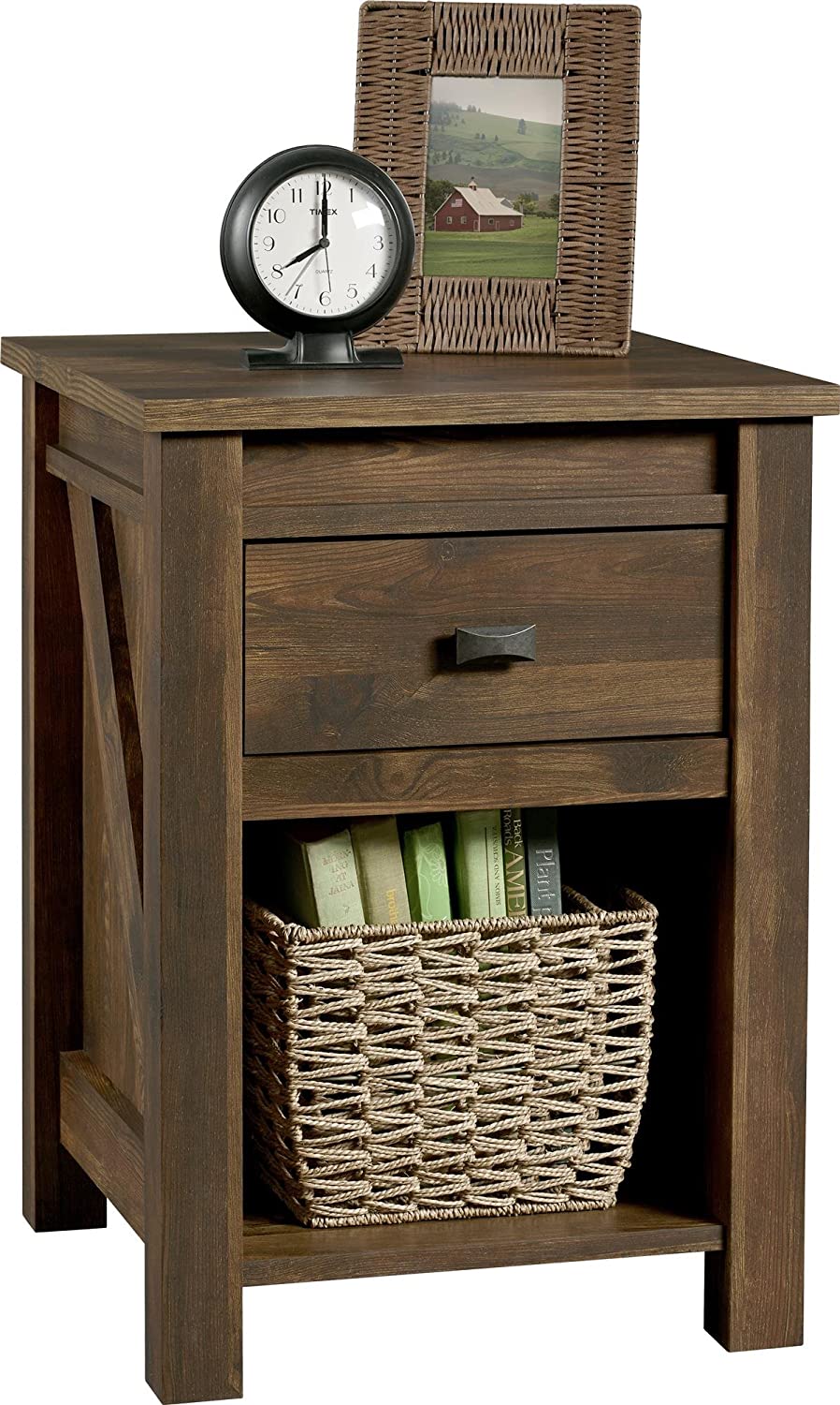 Color:Rustic | Style:NightstandComplete your bedroom with the Ameriwood Home Farmington Nightstand. Inspired by the farmhouse style, this rustic Nightstand resembles a wooden barn door and adds a unique touch to your space. The textured weathered medium brown finish has an old reclaime