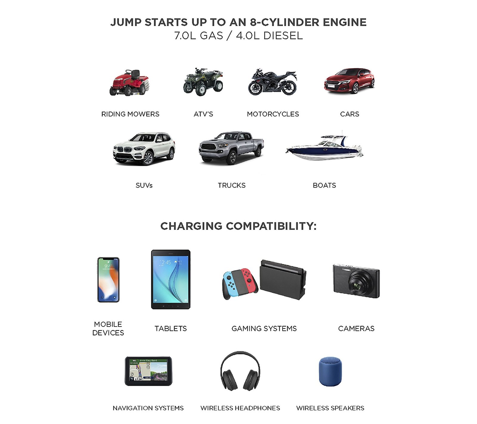 Enjoy the peace of mind this BoostHero jump starter, power bank, and flashlight provides. The portable powerhouse can be taken when you’re on the road and can jump start your car or charge your phone. And when you need to shed some light on the situation, use the four-mode LED flashlight! From Limitless. Includes BoostHero, smart jumper cables, charging cable, USB car charger, and carrying pouch 6,000mAh power bank Four-mode LED flashlight Measures 8.9″ x 2.8″ x 2.2″; weighs 0.85 lb ETL listed Imported Set a Reminder Save Reminders
