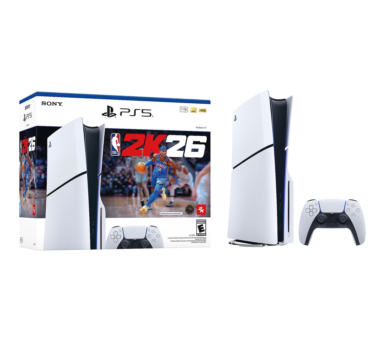 Step into intense action and immersive gameplay with the PS5 disc console, styled slim and packed with innovations to amplify your entertainment. Lightning-fast load times and rich 4K visuals get you right into the heart of the game, while the DualSense wireless controller lets you feel every play. From Sony. Enjoy NBA 2K26, featuring a deeply interactive city environment, haptic feedback, adaptive triggers, and stunning 4K resolution. Includes PS5 disc console, NBA 2K26 Standard Edition voucher, DualSense wireless controller, Razer Blackshark V2 wired headset, HDMI cable, AC power cord, USB cable, pre-installed Astro’s Playroom; voucher 1TB SSD storage Ultra-high speed SSD Integrated I/O Ray tracing technology 4K and HDR visuals Haptic feedback and adaptive triggers Bluetooth 5.3 wireless technology Horizontal stand feet Measures 16.94″W x 14.13″H x 6.63″D UL listed Imported Set a Reminder Save Reminders