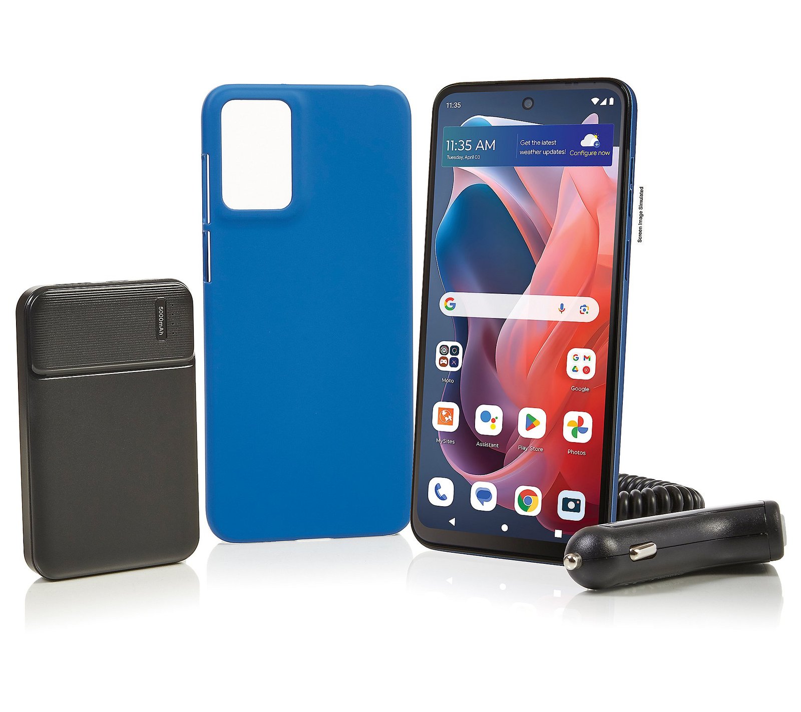 Update to a smartphone that keeps up with your squad and the world: the Moto G Play 2024 4G smartphone. Enjoy all your favorite games, apps, videos, and more on the fluid 6.5″ diagonal HD+ touchscreen display paired with immersive sound. Capture best-ever pics of your pets, loved ones, and vacation destinations with the 50-megapixel main camera — and share them; 1,500 minutes, 1,500 texts, and 1.5GB data make it easy to stay in touch with friends and family. From Motorola. Includes Moto G Play 2024 4G smartphone with USB charging cable, SIM tool, one year of service/1,500 minutes/1,500 texts/1.5GB data; handset, car charger, case, 5000 mAh power bank, and voucher Android 13 operating system Snapdragon 680 4G mobile platform with Qualcomm Kryo processor, Adreno 610 processor, and multi-core AI engine 6.5″ diagonal HD+ touchscreen display with 1600×720 resolution 4GB RAM 64GB memory 802.11a/b/g/n/ac Wi-Fi Bluetooth 5.1 wireless technology 50-megapixel main rear-facing camera with Phase Detection Autofocus, Quad Pixel technology, multiple shooting modes Eight-megapixel front-facing camera Captures Full HD video at up to 30fps Single LED flash AI features: auto smile capture, face retouch, selfie photo mirror, gesture selfie, Google Lens, spot color, and auto night vision Stereo speakers with dual SmartPA, Dolby Atmos support Side fingerprint reader Face recognition Gestures Family Space Type-C USB port Two microphone Audio jack Measures approximately 6.45″ x 2.95″ x 0.33″ Imported Set a Reminder Save Reminders